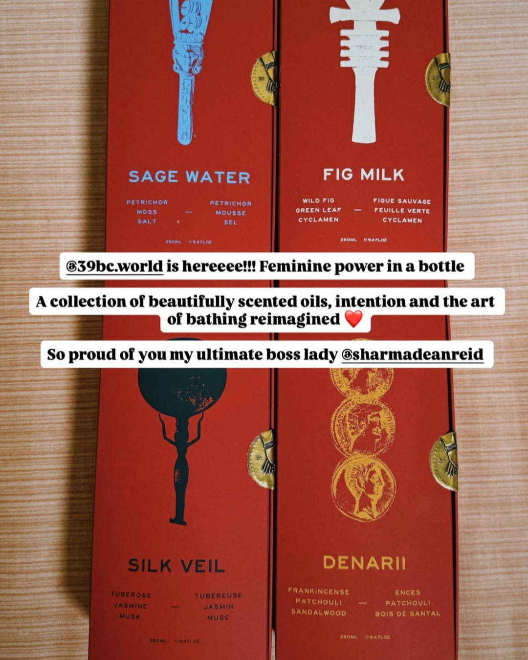 A gentle, hydrating fine-fragrance collection for daily use in a relaxing bath or invigorating shower. The FULL SET cleanses the body while leaving the skin scented with the soft fig of FIG MILK, the white florals of SILK VEIL, the warm woods of DENARII, and the clean, meditative rain of SAGE WATER.