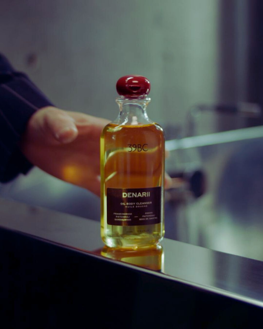A gentle, hydrating fine-fragrance oil for daily use in a relaxing bath or invigorating shower. DENARII cleanses the body while leaving a warm trail of frankincense, patchouli, and sandalwood on the skin.
