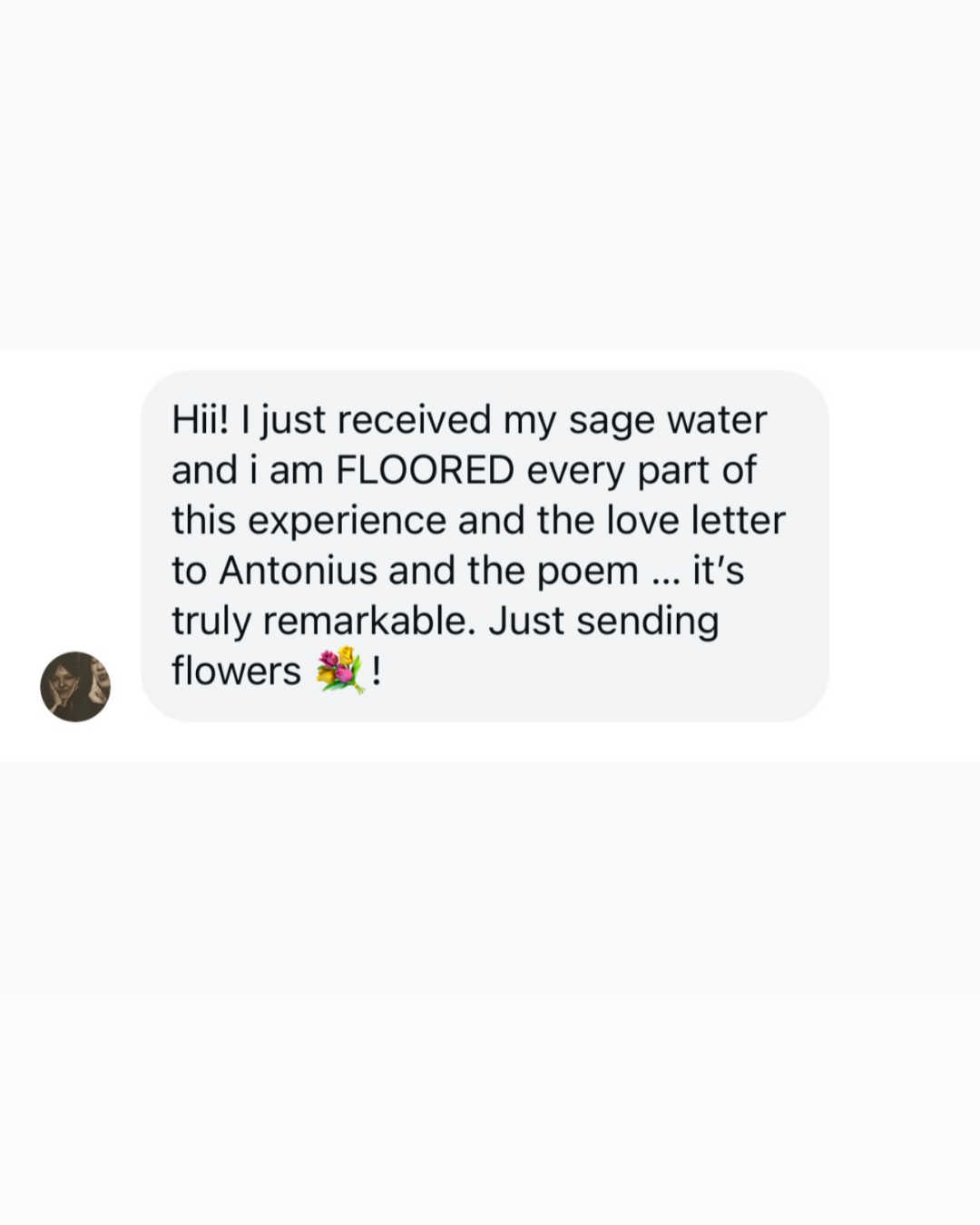 A gentle, hydrating fine-fragrance oil for daily use in a herbal bath or invigorating shower. SAGE WATER cleanses the body while leaving a clean, meditative trail of rain, moss and salt on the skin.